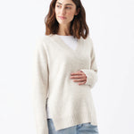 Experience the perfect blend of comfort and style with our Vera Nursing Knit. This knit comes in a relaxed fit and is constructed with a mix of wool, nylon, polyester, and acrylic. The V-neckline adds an element of sophistication, while long sleeves provide extra warmth. Designed with the needs of nursing mothers in mind, the side seam splits provide easy nursing access and allow for growth. You can easily pair this versatile knit with your favorite jeans or comfy leggings. Make this your go-to piece for those cooler days.