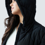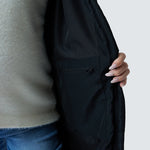 Wondering how you’ll keep your bun in the oven warm when none of your jackets zip up? We’ve been there. We made this weather resistant, water repellent, parka-length maternity puffer jacket with winter pregnancies in mind, like a high neck with detachable hood to keep cold air out and elastic wrist cuffs to keep warm air sealed in. The real magic is in the grow-with-you side zip panels that open and close depending on how much extra room you need.