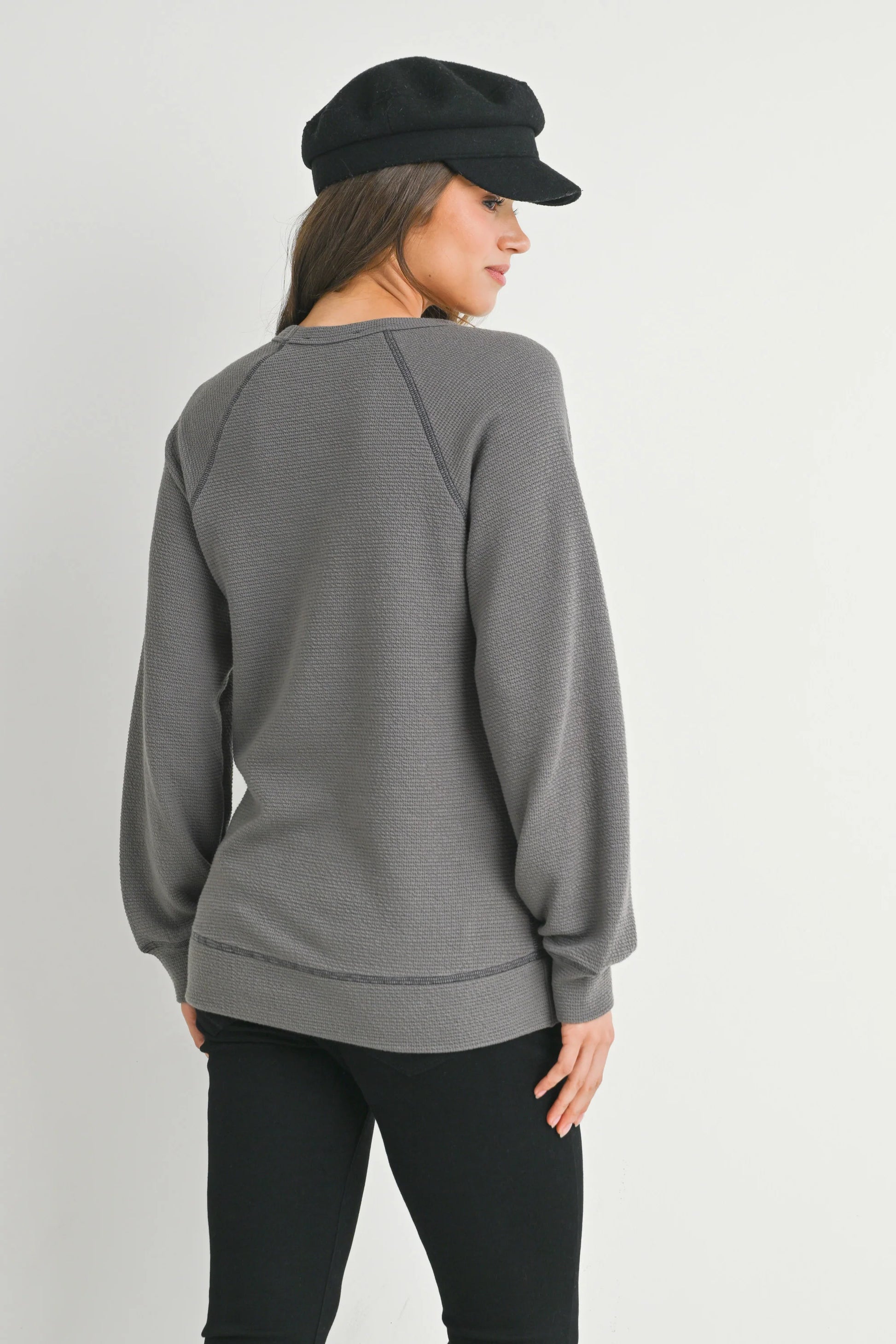 Hello Miz Crewneck Waffle Knit LS Maternity Top