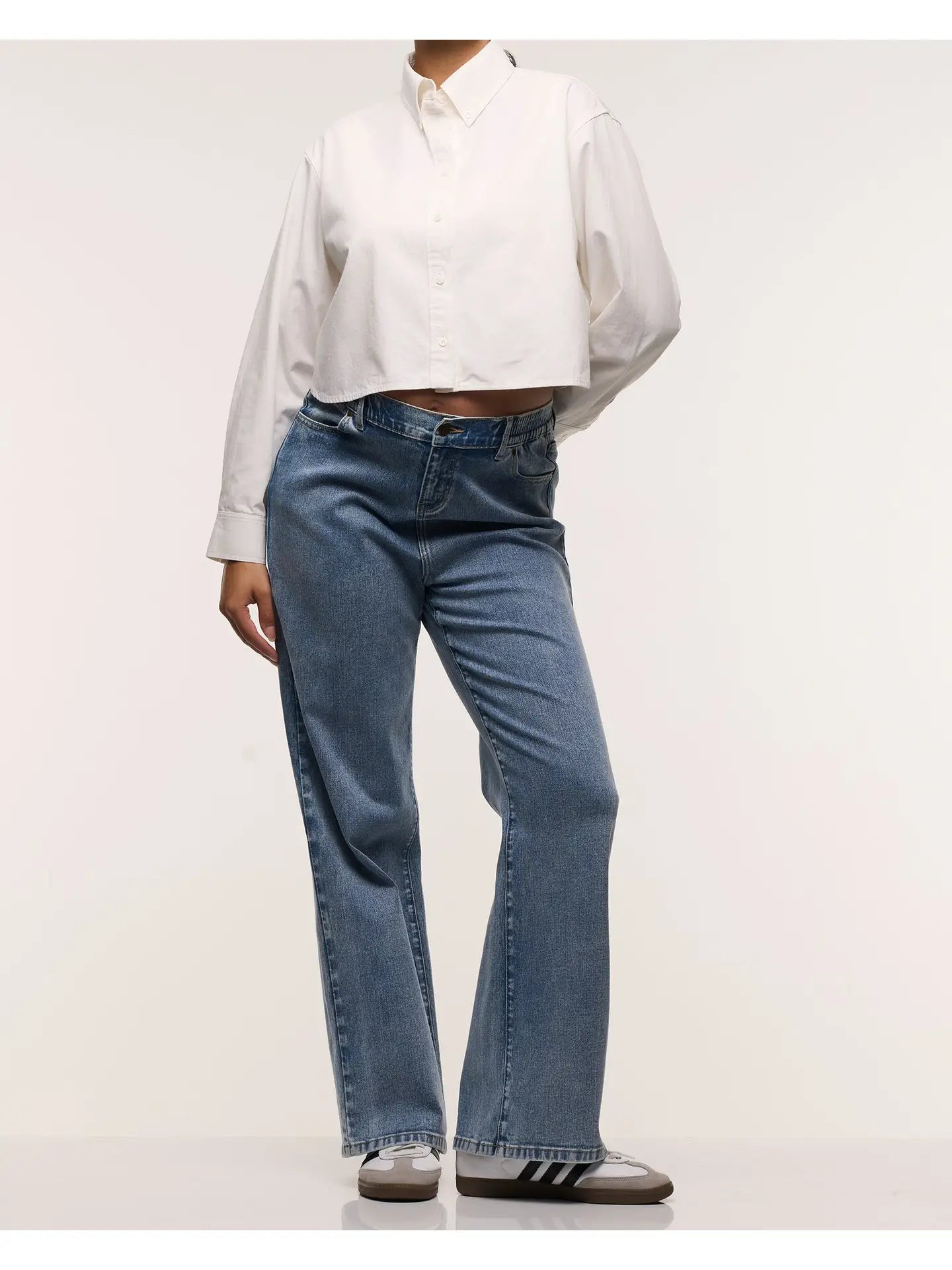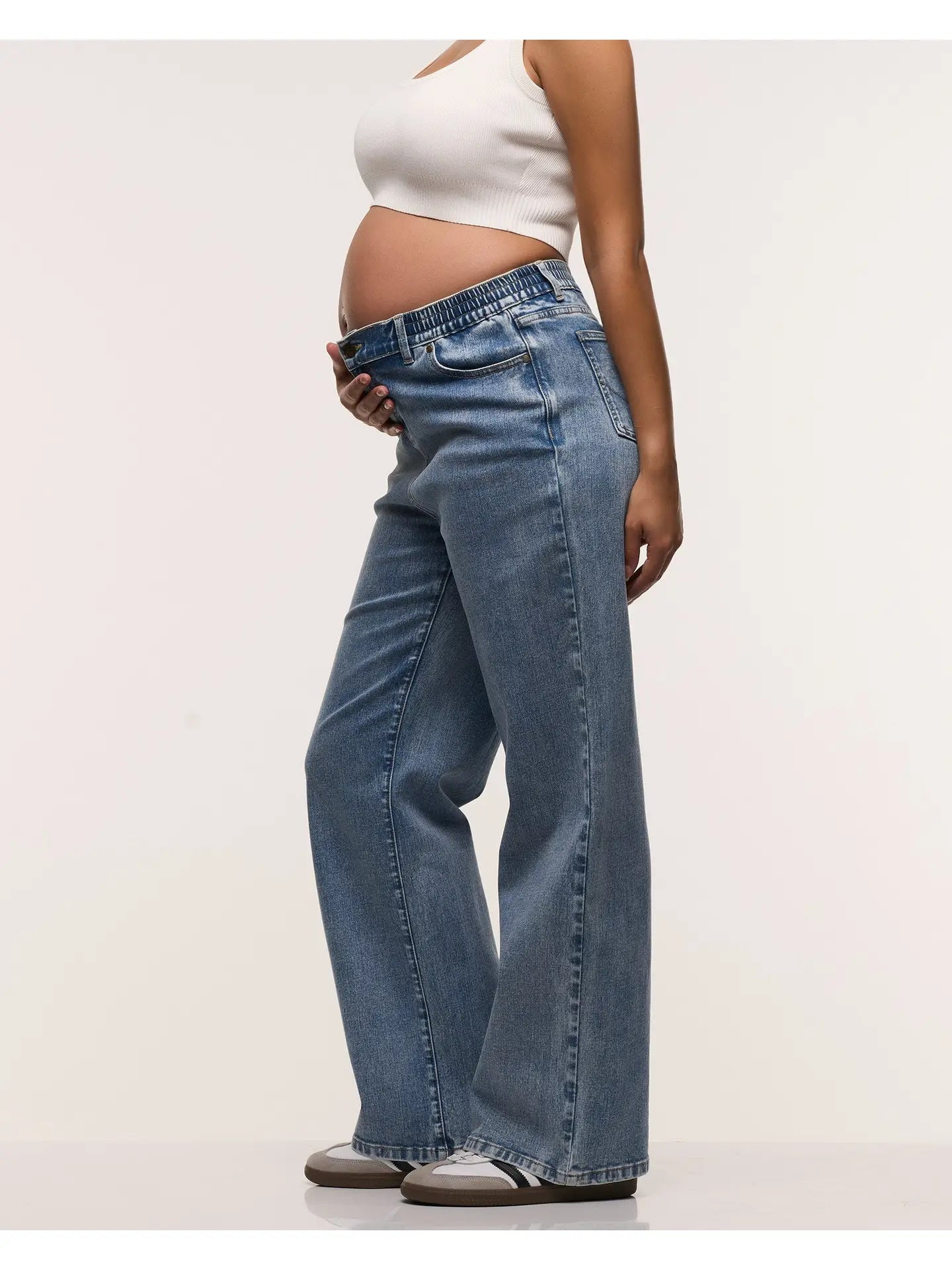 The ultimate mum jeans! These Relaxed Wide Leg Jeans are the perfect blend of style and comfort. Designed with a signature full elastic waistband that sits over your belly, they feature classic denim details including pockets, metal rivets and a button & fly closure. The wide and relaxed leg is flattering and on-trend. These jeans will be on repeat throughout your pregnancy and loved well after.