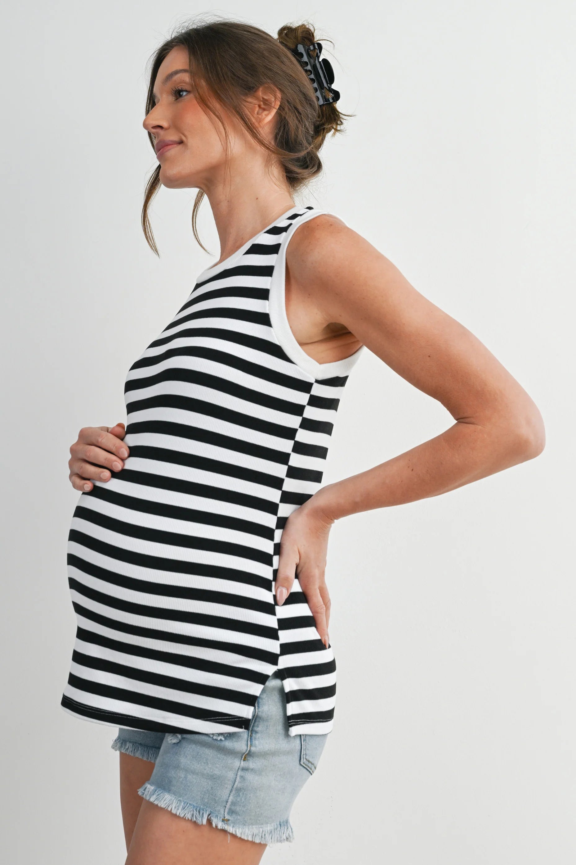 Embrace your beautiful journey with the Stripe Ribbed Maternity Tank Top! Its classic design and soft, ribbed fabric provide ultimate comfort, making it perfect for any occasion. Feel stylish and confident as you celebrate this special time in your life! Add this essential piece to your wardrobe today!