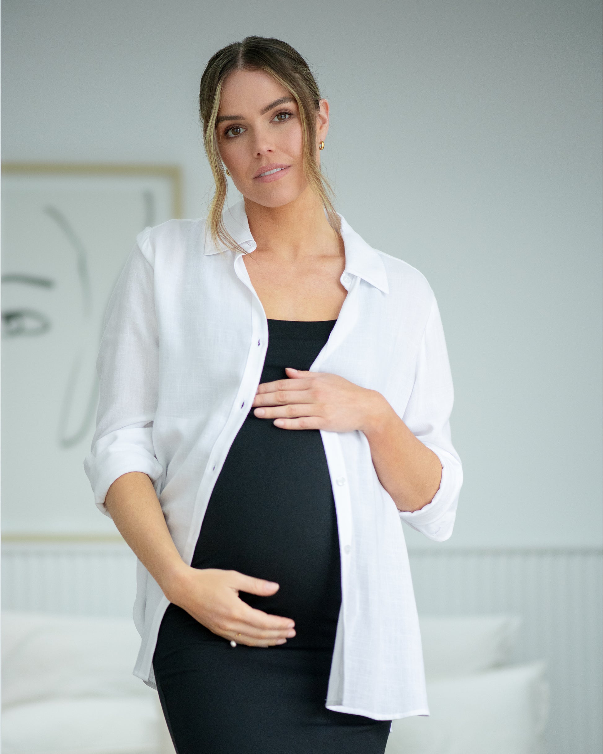 Everyone needs a classic white shirt in their wardrobe that you can throw on and go with denim, leggings for an athleisure look, or tied over skirts and dresses. As its name suggests, the Clara Relaxed Shirt is super lightweight with a relaxed fit for an effortless drape over your bump, or during postpartum. Plus, the button-up front makes it nursing friendly.